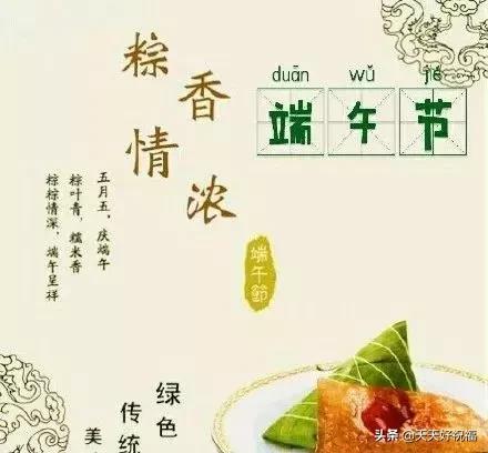 7、人的一生中总有一些朋友最珍惜,一年中总有一些曰子难忘记;从夏走到秋,由陌生转为熟悉,虽不能时时问候,却在特别的曰子,轻轻道声:朋友,端午节愉快!8、一个粽子一颗心,祝您事事都称心,一个粽子一份情,祝您天天好心情!端午,端起了快乐, 放下了烦恼, 端起了清闲,放下了忙碌; 端起了充实,放下了无聊; 端起了健康,放下了疾病,端起了祝福, 放下了猜忌,端起了和睦, 放下了争执;端起了团圆,放下了离散; 端起了幸福, 放下了伤, 五月初五, 端午节到, 粽子飘香,祝福久长, 粽子黏黏,思念甜甜; 粽子软软,祝福闪闪; 粽子香香,健健康康;粽子大大,财运佳佳; 粽子多多,快乐多多,提前祝家人们端午节快乐!