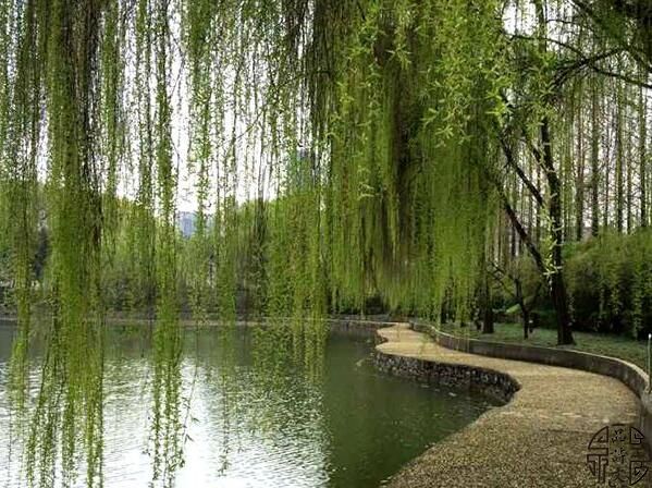 碧玉妆成一树高,万条垂下绿丝绦。〔初春的杨柳,宛若妙龄少女碧玉,苗条的身段,婀娜的身姿,楚楚动人。她那万千枝条,舒展展地垂下来,轻轻地拂动着,活像碧玉身上飘下来的绿色丝带,那么轻盈,那么柔和。〕