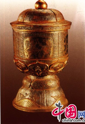 除了陕西法门寺,佛教用品在黑龙江、江苏、甘肃等地也有发现。金质佛教用品以外,尚有更多鎏金器物。佛教的传播,对金器的发展和繁荣产生了较大影响。