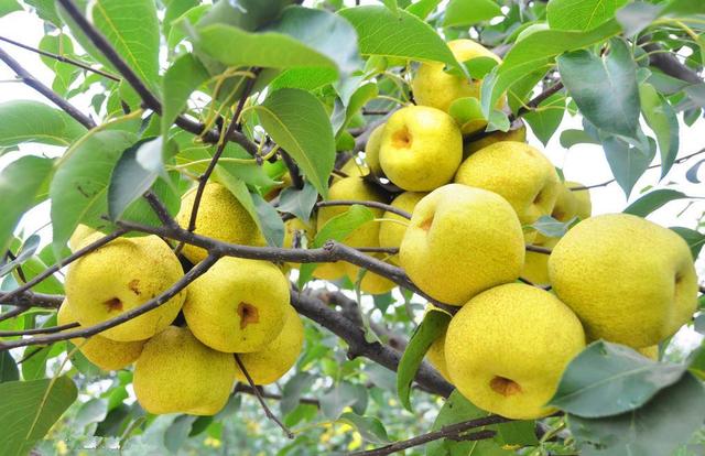 6、 秋天欢天喜地来到果园,果园里果实累累,有红彤彤的苹果,圆圆的,又酸又甜。还有黄澄澄的鸭梨,又香又甜就像一个个小小的葫芦。一阵风吹过,看那几个梨子,你挤我,我挤你,好像在做游戏。