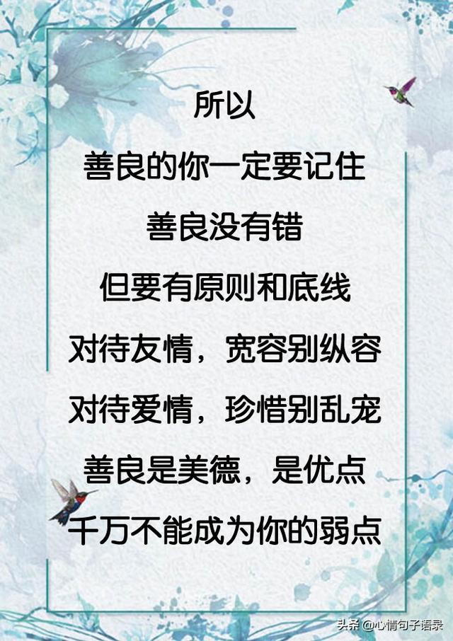 一、努力,是为了跳出你厌恶的圈子。读书,是为了远离渣货垃圾人。健身,是为了让讨厌的人心平气和的跟你说话。唯有成为了更好的自己,世界才是你的!二、比你有钱的人,一定比你努力,比你努力的人,终有一天会比你有钱,生活本来就是平衡的,你不为赚钱付出辛苦,你就得为省钱烦恼,这不是鸡汤,是现实!三、人最大的对手..