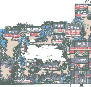 国学全园可分作三大部分:东部是宅院区,为府第;中部是山水景物区,为主园;西部是内园,即园中园。这一布局,使整座园林外形整齐均衡,内部又因景划区,境界各异。13k4j国k1jda学iuf57网97n67