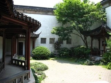 国学小轩及复室内陈设明式家具及画具,20世纪30年代国画大师张善孖、张大千兄弟寓居于网师园,此处即是张氏昆仲作画的大风堂。堂内北墙不封闭,开了三个大窗,用红木镶边形成三个长方形窗景,窗外天进中种植腊梅、翠竹、芭蕉、天竺,配以几峰湖石,一格窗景就是一幅立体的画,轻描淡写,空灵秀美。室外的庭院布局结构紧凑,竹石梅蕉隐于窗后,微阳淡抹,浅染成图。庭院内采用周边假山手法,使之产生余脉连绵的情趣。假山不大,也不高,却起、承、转、合,极有章法,有韵律,有节奏,如一曲流畅的音乐。假山的起始是一脚矮脉,自院西北伸起,逶迤南奔,山势不峭不陡,不徐不疾,是这首交响曲开始时的前奏曲;继而渐渐拔高,出现假山群的第一个高潮,在庭院横轴线上正对“潭西渔隐”处,安排了一块石峰,突兀的峰体和正东开阔、明净的水面对比呼应;此后山势徘徊,似乐曲中的柔板,过渡,构半亭于山势中,亭名“冷泉”。此亭倚墙而筑,体量纤小,与小院格局十分相称,飞檐翘角颇为轻灵。亭中有一块巨大的灵壁石,形状像一只展翅欲飞的苍鹰,叩之铮铮有金属声。据传说,此石原在城西桃花坞唐寅宅内,辗转流传到此。在半亭中“坐石可品泉,凭栏能看花”,令人赏心悦目。到此,围拥小亭的山石态势继续南起突然跌岩下滑,怪石嶙峋中,水气森森,俯视洞壑幽深,底藏渊潭,是一泓天然泉水,其旁有石刻“涵碧泉”,取意于宋代朱熹“一方水涵碧”的诗句。泉水清澈明净,水旁有小径。院内有此一泉,使全园水脉得以贯通,真不愧为该园艺术中的神来之笔。山势再往下而形成渊潭后,忽地拔高,恰如银瓶乍破,铁骑突出,矗立起一座陡峭的石峰,这是整个庭院中最高的湖石峰,与北面的主屋互相呼应,恰好处于南北的中轴线上,成为整个山石音乐最高潮。继而假山继续往东,若断还续,绵延不绝,恰似音韵流淌,间关莺语,幽咽泉流,群山匍匐。在东侧墙根外,峰峦忽而竞涌,群山归一,聚而为一大山,使人感到沉郁苍茫,犹如八音齐奏,金鼓齐鸣,作为全曲的终结,又有余脉之意,所谓意犹未尽,余情未了。13j4k国1jouf学iugjk网ljgsf