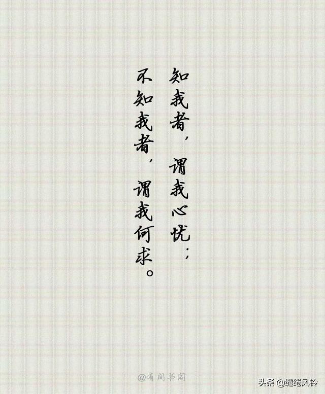 知我者,谓我心忧;不知我者,谓我何求。悠悠苍天,此何人哉?