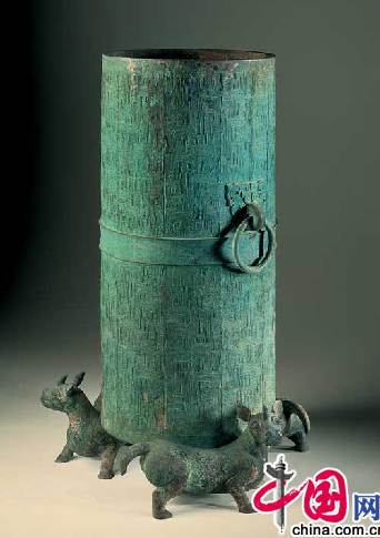 犀足蟠虺纹筒形器,战国,河北省考古研究所藏。