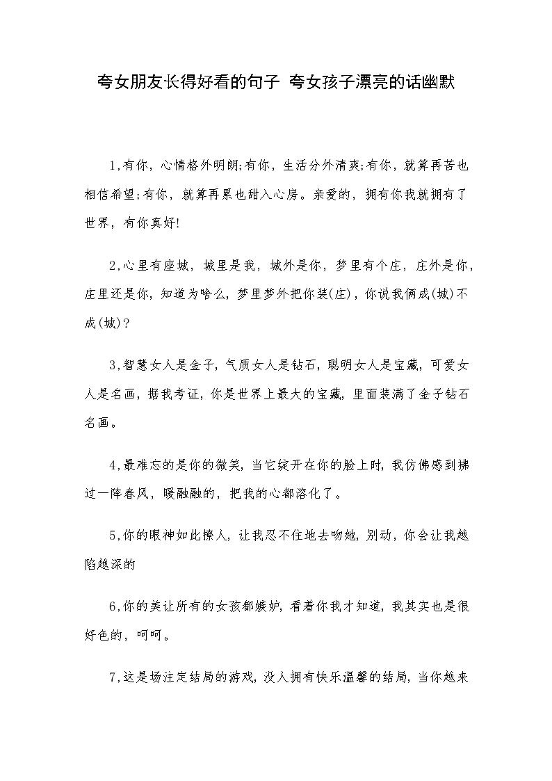 一赞美女性的英文句子 1赞美女生漂亮的英文句子,我痴痴地伫立在那大树旁 2赞美女人的经典英文名言,那时的我们懵懂无忧 3史上最美十句。1有你真好,像家人的感觉It'snicetohaveyou,likeafamily2今天肯定没月亮了,因为月亮的光辉都给你遮盖了Theremustbenomoontoday。