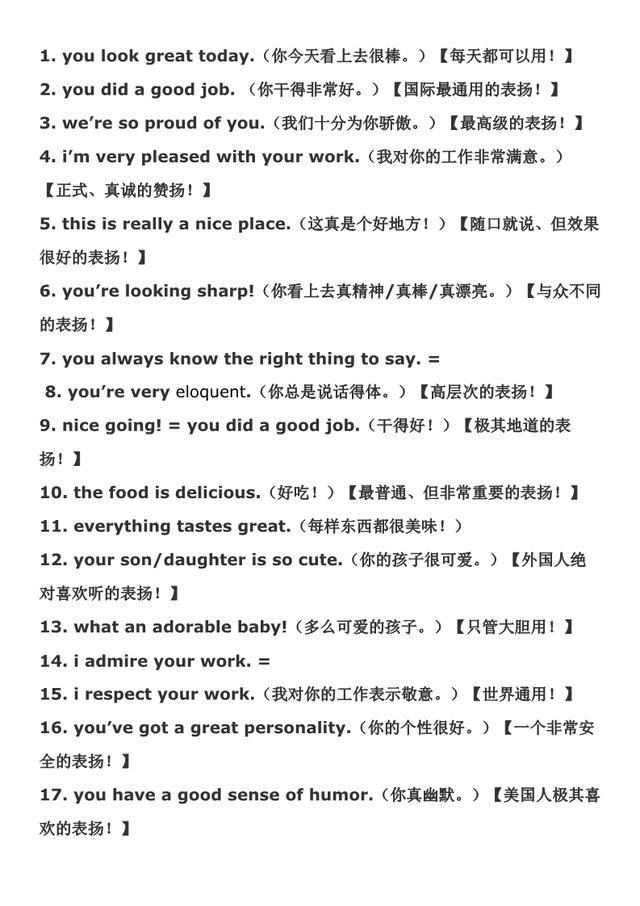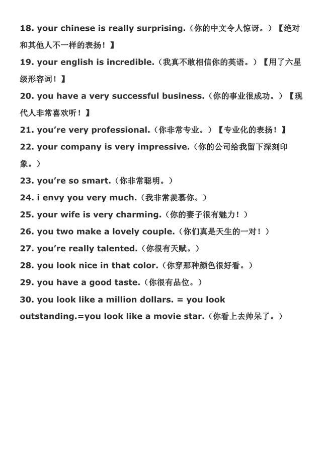 用来赞美人的常用英语句子
