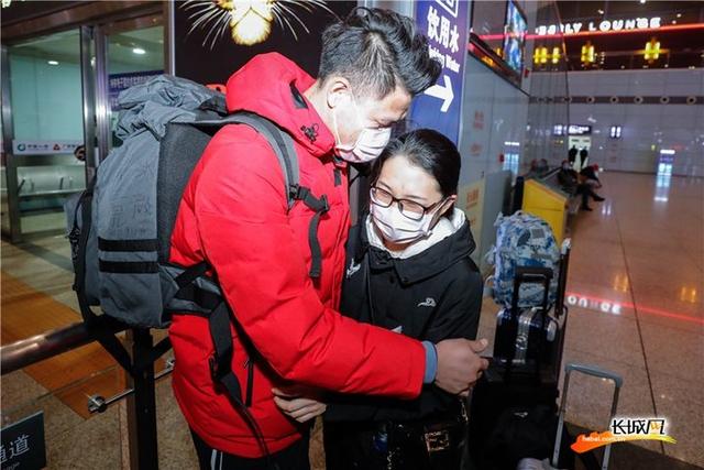 张微和男友拥抱告别。长城新媒体记者 刘潇 摄 ——1月27日晚,河北医科大学第三医院呼吸科护士张微随河北省第二批援鄂抗疫医疗队出发到武汉支援,她的男朋友赶到火车站送她,跟她说:“等你平安归来,我们就结婚。”车站比殿堂见证了更多真挚的拥抱。