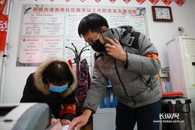 张杰(右)奋战在工作一线。 石家庄市鹿泉区获鹿镇南苑社区党支部书记张杰自除夕夜开启疫情防控以来,就没休息过一天,“社区只有我一个书记,居民更需要我,关键时刻我必须冲上去。”每天早上上班时都会嘱托临产的妻子说:“我不能离开岗位,你一有动静,先拨打120。”舍小家为大家,你是社区的好书记。