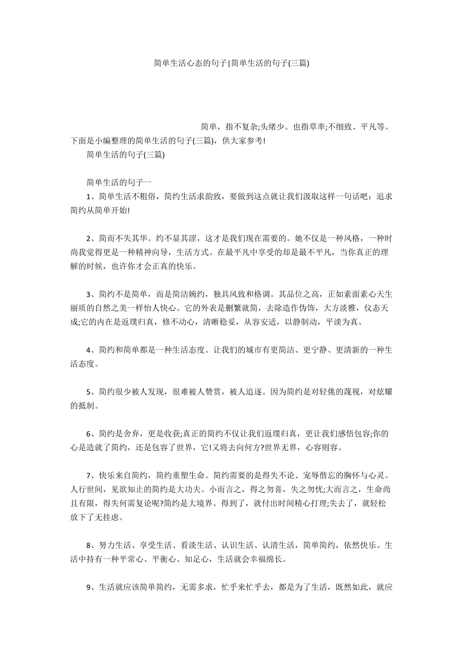描述简单生活的句子 1据说夜里睡不着的人,皆是醒在别人的梦里走过百转千回,我们谁也不是谁的唯一,对于陪伴与懂得,爱情原只是一件外衣 关于2。不违心,不刻意,不必太在乎,放开执念,随缘是最好的生活十一 拒绝别人并不伤人,答应别人的事却做不到,才是真的伤人又伤己十二 如果有一天,让你心动的再也感动不了你,让你愤怒的。简单生活心态的句子20201106 综合百科 Byyangang 1简单生活,简单爱,想把每一分都做好 2素年几时,简单生活,不追逐名利权位,端坐于季节的末梢,静听风吟,坐观叶落,在喧嚣中,守。