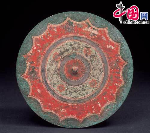 彩绘车马人物铜镜,西汉,陕西省西安市红庙坡出土。