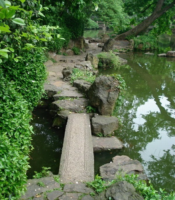 4、七星桥涵碧亭七星桥是锦汇漪上的石桥,由七块黄石板直铺而成,因名“七星桥”。“七星桥”横跨在锦汇漪上,平卧波面,几与水平,乾隆曾吟有“一桥飞架琉璃上”之句。七星桥东面临水的是“涵碧亭”。亭四方架水上。飞檐翘角,亭后的古樟,已有400多年历史。