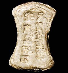 除以上的一些方孔圆钱外,在宋朝还出现了一种长方形的钱币,叫“钱牌”。在南宋理宗淳祐年间,发行了一种形状奇怪的货币,是长方形的小牌,大小如现在存取自行车的小牌。这种钱是用铜铸的,两面都有字,正面文字为“临安府行用”,钱背则记为“准五伯文省”、“准三伯文省”“准贰伯文省”等。钱文中的“准”字是“平”,“伯”是“佰”,“省”就是当“省佰”讲的,意思是在交易时支付小牌相当于×佰文铜钱。临安是现在浙江省杭州,是当时南宋的国都。“临安府行用”规定了这种钱牌只能是限于临安府流通的代用币,其铸造行与当时的钱荒和禁钱出城有关。宋代由于货币经济的长足发展,市场对铜钱的需求量大增,在铜供不应求的情况下,经常发生钱荒现象。为了维持正常的商业活动,当时城里的官员们明令禁止铜钱出城。《文献通考钱币考》曾说:“自国家置市舶于浙、于闽、于广,舶商往来,钱宝所由以泄,是以自临安出门有禁,下江有禁,入海有禁。”禁止铜钱出城后,进入城市的铜钱当然也会相应减少。城市内外贸易流通只得依赖纸币了。而大额的钱币投入市场,有不便找零之弊,于是就产生了钱牌这种代用币了。南宋的钱牌也多在杭州一带出土,但数量少,极为珍稀。