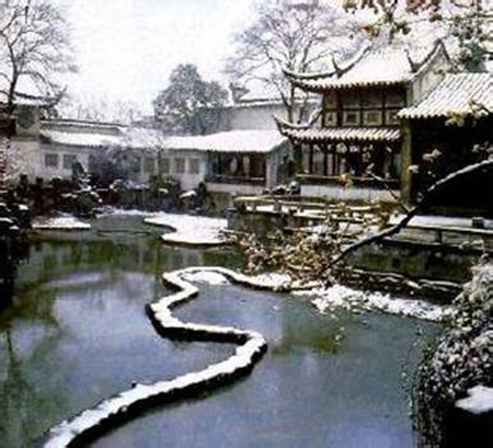 (3)独立成景,兼顾季相:古木交柯砖砌花台上的古柏、山茶、天竹,花步小筑的古藤、绿荫轩旁的青枫、曲溪楼旁的枫杨、小蓬莱岛上的紫藤架桥都是独立成景的佳例。