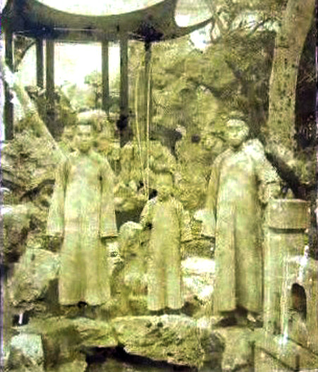 冠云峰 瑞云峰 岫云峰 被誉为“留园三峰”。冠云峰居中,瑞云峰、岫云峰屏立左右。据说三峰造型意境来自郦道元的《水经注》。《水经注》卷十一引《地理志》云:“燕王仙台有三峰,甚为崇峻,腾云冠峰,高霞翼岭,岫壑冲深,含烟罩雾,耆旧言:燕王‘求仙处’。”这里说的燕王即燕昭王。其中瑞云峰在清代被置于江南织造府行宫中(今苏州十中校园),今日留园只有冠云峰和岫云峰。冠云峰介绍见前“留园三绝”。