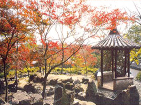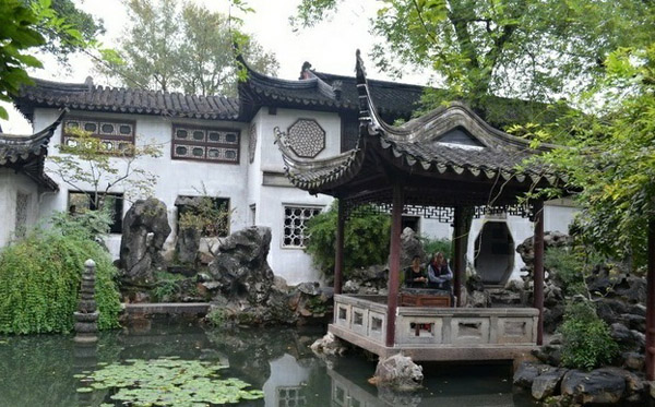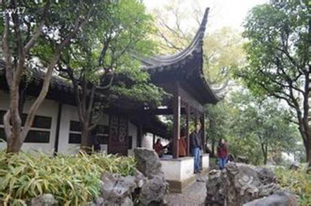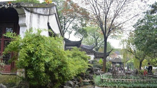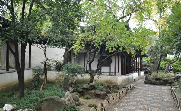 闻木樨香轩 可亭 闻木犀香轩位于中部西墙爬山廊的山顶位置,为俯视全园景色最佳处。木樨,即岩桂。轩为方形,后倚云墙,单檐歇山造,徐氏时称“桂馨阁”,刘氏时曾名“餐秀轩”,盛氏时改为今名。闻木樨香轩,是观秋景的佳处。此处山高气爽,环顾四周,满园景色尽收眼底,是对景池东曲溪楼的主要位置。轩内有郑文源集句组成一联:“奇石尽含千古秀;桂花香动万山秋”。上联化自晚唐诗人罗邺《费拾遗书堂》诗句“怪石尽含千古秀,奇花多吐四时芳”句,是说奇石含蕴着千古秀色。下联集明代谢榛《中秋宴集》诗句,“江汉光翻千里雪,桂花香动万山秋。”是说秋风吹拂,万山浮动着桂花的香气。“动”字将香写活了。