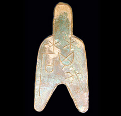 (圆足布)“圆足布”的特点是圆首、圆肩、圆裆、圆足,故称之为“圆足布”或“圆首布”。“圆足布”是战国后期在中国北方的晋地所铸行的一种平首布币。