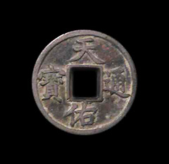 “天佑通宝”据说是张士诚率部攻下平江城后用承天寺的铜佛铸成的。张士诚的年号,也是受了承天寺的“承天”二字启发而采用的。张士诚铸行的“天佑通宝”沿用了当时的至正钱的形制,边廓齐整,面文楷书,背文用篆书。篆文有“一”、“贰”、“叁”、“五”等记值字样,钱分小平、折二、折三、折五等。天佑通宝铜钱发红,可能跟用铜佛所铸有关。天佑通宝钱本身发行就少,再加上朱元璋的搜缴销毁,所以传世不多,尤其是背穿上有“贰”字者就更难见了,属极罕见品。