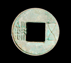 二、钱型整齐,直径25-25.5毫米,穿直径约0.97厘米,郭厚0.15-0.2厘米,宽0.1-0.14厘米,比郡国五铢的郭略宽,且深峻平整,连接钱肉的一面垂直。背有内外郭,个别内郭四角微凸。
