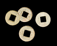 “四出五铢”又称“四出文钱”。所谓“四出”,是指钱幕从方孔的四角向外引出一道阳文直线到达外部,这可能是为了防止锉磨钱背盗铜用的防范技术。东汉灵帝中平三年(公元186年)铸的“四出五铢”比一般“东汉五铢”铸造得要好,钱的重量也要重一些。它的直径为2.5厘米,穿径约8毫米,廓厚0.15厘米,重3.6-4克。汉灵帝性极贪婪,“帝本侯家,宿贫,每叹桓帝不能作家居,故聚为私藏”(《后汉书·张让传》)。堂堂一国之君,普天下都是他的,还嫌不够,还要卖官揽钱以充金库。在这样的昏君统治下,老百姓哪还有好日子。