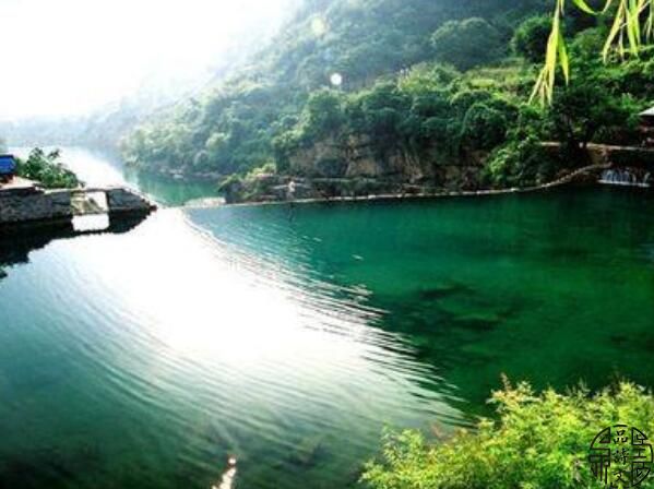 穿行乱石发出喧哗声响,淌过松林水碧松蓝相当。