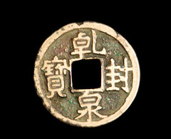 乾封泉宝唐高宗武德初年时,所铸的开元通宝钱数量不多,旧钱与古钱在此时已渐退出流通,市场中钱币不足,直到唐太宗贞观初年时,交易时仍有用布帛的。朝廷怕出现那种隋朝时的通货膨胀,市场上虽然需要钱币,但却小心谨慎,不肯增加发行,反而还鼓励以物易物,大力疏导通货回流。当时是一斗米只需三五文钱,老百姓零用时大感不便,虽用布帛,却太不灵活。同时中国同海外各国的交流也日渐增加,钱币大量外流,这一切都使国内交易感到乏力。由于这些原因,民间私铸行为渐渐又起。私铸钱虽然比较小,但有的质料铸工都还可以,所以有的地方把它当官钱使用了,以两三枚抵官钱一枚。私铸钱能够与官钱并使不冲突,这在历史上也是少见的。唐高宗时,政府看到通货紧缩的利益却为私铸者所得,大感不满,命令取缔私铸,并以五比一的比率用官钱换私钱。但缺少人问津,甚至有把私钱收藏也不兑换的。于是在乾封元年(公元666年)推出“乾封泉宝”,以一枚当开元通宝十枚行使,目的似在于增加发行,刺激物价,使私钱失去存在的依托。乾封泉宝直径2.5厘米,隶书,旋读,光背,铜料精纯,铸工良好。在中国钱币史上,钱文用泉宝的也极少见。但此大钱推出后效果并不好,老百姓对大钱并无兴趣,更为害怕通货膨胀,因而纷纷收藏开元钱,致使私钱大涨,到最后也不见了,只剩大钱。朝廷见此情景只得下令停铸,以流通的乾封大钱以一比一开元钱行使之。唐玄宗初期,朝廷吸取经验,再次整顿私钱,先鼓励生产,扶植商业发展,铸造开元钱时,只有新钱质量达到标准才准流通,以增加官钱信用,且增加铸量,挤兑私钱。这次所铸的新开元钱,元字也有挑笔的区别,背文增加了星、日纹等。