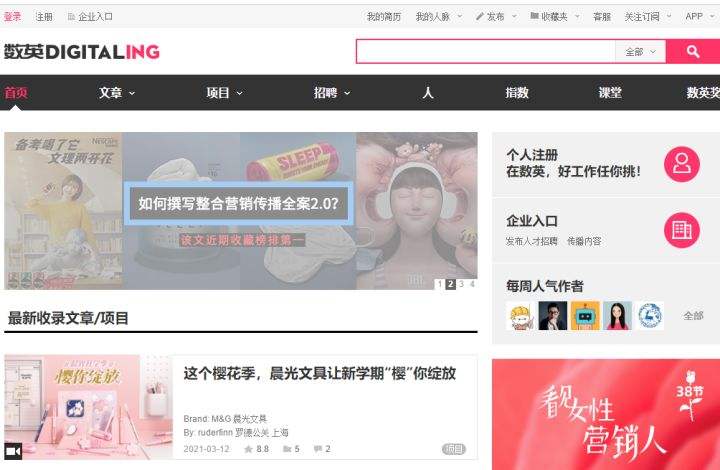 该网站集合了各行各业大量优秀的文案广告创意案例那份灵感与素材。