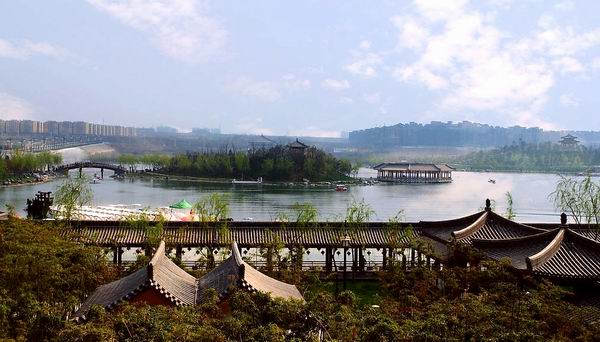 隋唐时期是我国古代园林发展的全盛期。隋代园林以丰富的水景水法取胜。如隋炀帝的西苑即以水景为主,园之湖面周长十多里,象征蓬莱、方丈、瀛洲的山景浮于烟波之中,山上的台观楼阁依稀可辨。唐代除了在长安大修宫室以炫耀王权外,还在骊山依山而筑华清宫,使骊山渭水、离宫别馆融为一个巨大的园林。又在长安城北筑东苑、内苑和禁苑,并在禁苑内筑“逑场”,供贵族们打马球,这是我国园林中最早出现的体育设施。另外,长安城内还出现我国历史上第一座公共游览性质的大型园林——曲江。环江还有观榭、紫云楼、采霞亭等,每年定期向市民开放。我们从杜甫的《丽人行》,敦煌曲子词《莫攀我》以及唐人传奇《李娃传》、《霍小玉传》等诗词小说中,可以推测这座唐代公园的盛况。