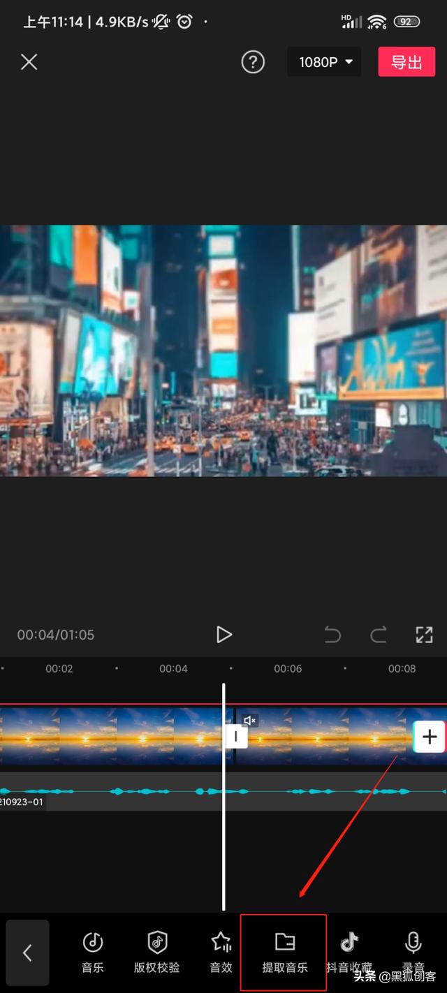 点开剪映,然后点击音乐,选择[提取音乐],把我们刚才在百宝音制作好的视频音频导入进去,和我们的素材视频或者图片结合起来。