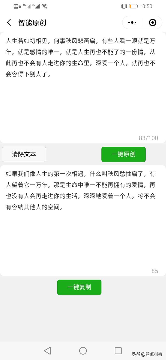 如果你文笔好,你可以自己写;当然,你也可以去网上搜索。像知乎或者搜狗等,都能找到共鸣的的情绪语录,把一些有感触的情感语录直接复制下来。后期还要重新修改一下,通过黑狐文字提取神器里面的智能原创,把原文案重新二次创作一下,这样不仅能够避开版权问题,也能提升视频推荐。