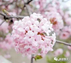 太阳露出地平线那一刻,香荚蒾,抢先一步拉开春的帷幕,它们以最美丽的姿态,最灿烂的笑容迎接朝阳并且释放出全身的香味。粉红色米粒大小的圆锥花序小脸,在春风的涤荡下,好似炸裂的爆米花,噼里啪啦绽放出朵朵小白花,雪白的花瓣在春风中微微颤抖,空气中弥漫起浓郁的花香。疤痕累累的老杏树,黝黑着皮肤,粗皮老脸站在一旁。岁月沧桑了它的身躯,动摇不了它要开花结果的心事。一颗颗红心般涌动的花蕾爬满枝干,春风里,正努起深红的小嘴唇,推推搡搡,吵吵闹闹,一出“红杏枝头春意闹”的人间喜剧即将开演。
