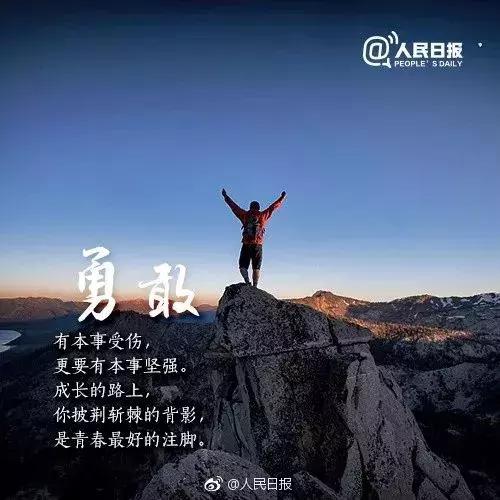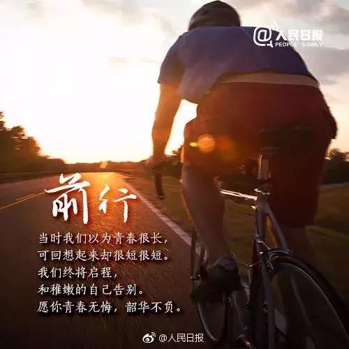 青春,是做不完的考卷,是带着阳光气息的白衬衫;也是奋不顾身,一心追梦,哪怕万人阻挡,也不曾投降的勇气和力量。有本事受伤,更要有本事坚强,因为每段青春,都是限量版。五四青年节,莫虚度,莫辜负,继续光芒万丈吧,青春!加油,敬自己!