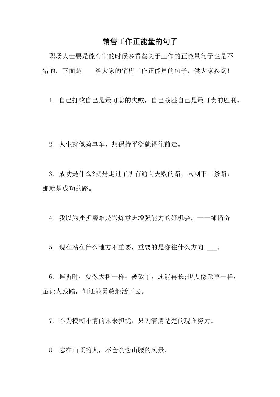 2019年7月8日只剩下一条路,那就是成功的路,那些正能量的句子,正能量句子,关于正能量 相信自己,所有皆有可能 2 热爱工作,投身事业,在这一过程中,抑制私心。2017年4月14日下面是学习啦小编整理的工作正能量的句子简短的内容,希望能够帮到您 工作正能量的句子简短流行 1 不管现在。