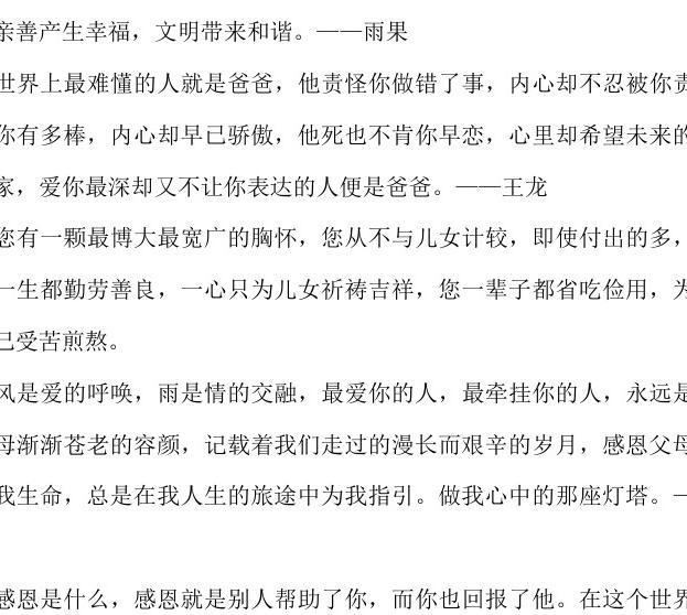 形容孝顺的句子1一日为师,终身为父 2生活需要一颗感恩的心来创造,一颗感恩的心需要生活来滋养 3滴水之恩当涌泉相报 4您用心点亮了我的。3,一个不孝顺父母的人,他拿什么让我们相信 4,我喜欢这样的女孩子素颜或者 女儿孝顺母亲的句子 女儿孝顺母亲的句子 要想有福气,必须。要想有福气,必须孝顺,一个懂得孝道的人在阳间一定会有福如果做儿女的不孝顺父母,就脱离不了苦难的业海,不能登陆幸福的彼岸孝顺,孝而不顺,就。
