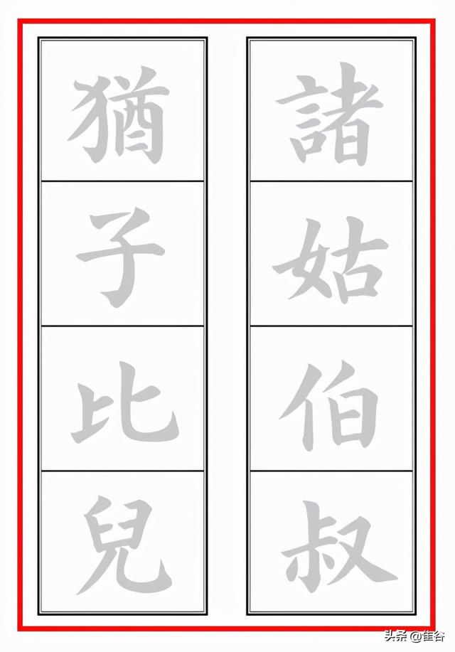 诸姑叔伯,犹子比儿。其实包含了两层含义,或者说涵盖了两个层面的伦理关系:一是诸姑叔伯对侄子,要像对待自己的亲儿一样;二是侄子对待诸姑叔伯,要像对待自己的亲生父亲一样。只有做到以上两点,家庭关系才能长幼有序,和谐团结。同时,也只有做到这些的人,才能有仁爱之心,才能在社会上树立良好的形象,建立和谐的邻里、同事、朋友关系。