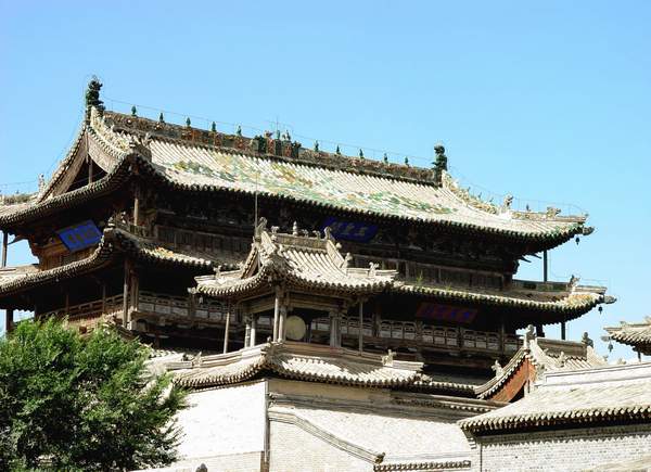 建筑群内大佛寺原为藏传佛教,现仅存大雄宝殿,殿内供三世佛。