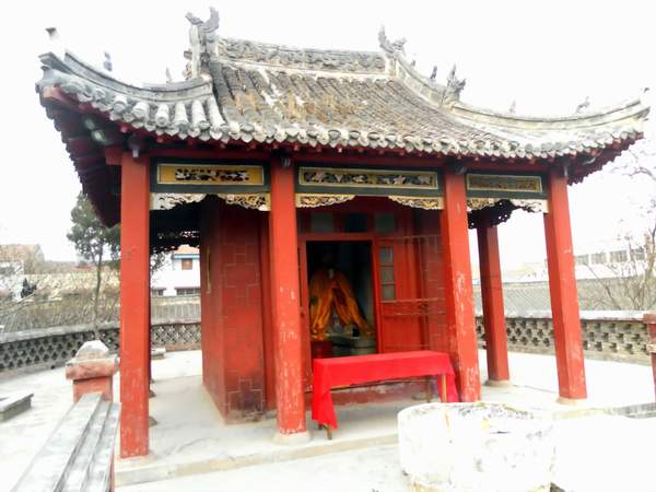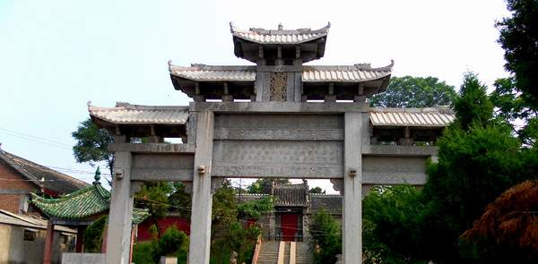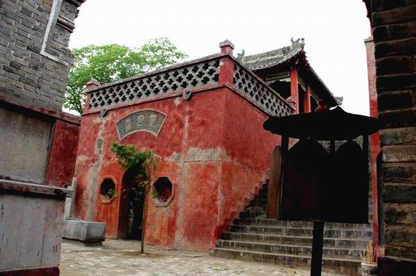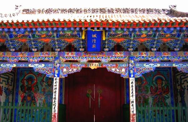 玉清观牌楼四柱三檐,牌楼后第一进是灵官殿,单檐悬山顶,供奉道观的护法神——王灵官,左右陪祀方角、耿通二位大将军。