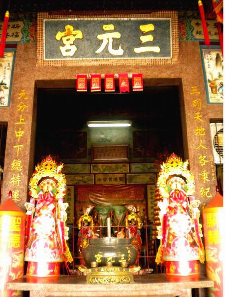 三元殿内除供奉三元大帝之外,还供奉着道教中地位最高的神祇,即玉清元始天尊、上清灵宝天尊和太清道德天尊三尊神像。