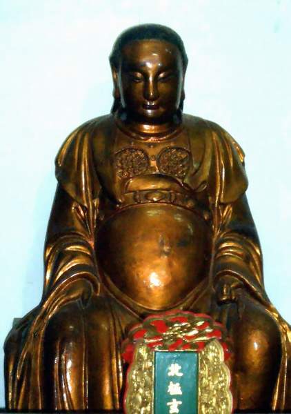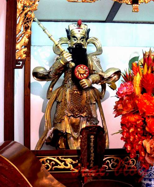三官殿内设有雷声普化天尊、四大元帅、三官大帝、真武大帝、监坛土地神位。其中三官大帝是指天官、地官、水官,这是中国古代农业社会决定风调雨顺、五谷丰登的关键神祗。三官殿的正殿两侧,分别供有“雷神”和“真武”二神。在道教中雷神和雷公不是一回事,雷神是正义之神主要是惩罚恶人、伸张正义之神,真武即北极真武大帝,全真教崇奉的最高神祗。
