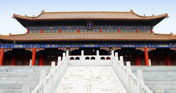 唐山玉清宫主殿三清殿,石阶中有一块“八仙朝三清”的丹陛石
