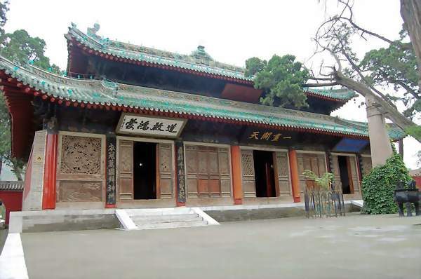 东道院依山而立,坐东朝西,规模不大,小巧玲珑,正殿三间,内供奉九天玄女塑像。九天玄女简称玄女,俗称九天娘娘。她是一个正义之神,形象经常出现在古典小说之中,成为扶助英雄铲恶除暴的应命女仙,《水浒传》中就有关于九天玄女协助宋江的文字。因除暴安民有功,玉皇大帝才敕封她为九天玄女、九天圣母。