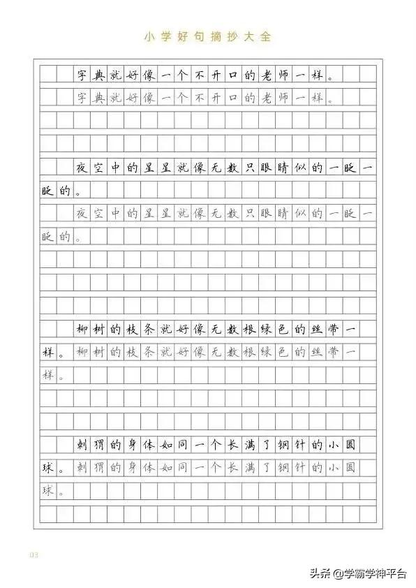 小学生好句摘抄。练字又学句