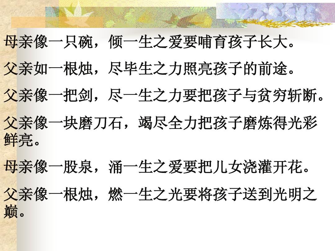 有时阿宋会特意抽出一节数学课,跟我们谈如何尊父爱母。从古代谈到现代,从外国谈到中国,甚至拿自己做例子。讨论气氛之热烈,让隔壁班老师有冲过来掀桌子的冲动。(《班主任阿宋》湖南省长沙市长郡中学澄池文学社 朱元静)