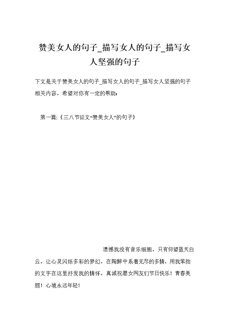 赞美女人自信的句子 1自信的女人就像一片大海,不拒点滴,又包容江河自信使女人得到更多的青睐不争眼前才能放眼世界,给予别人才能够受益无穷 2男人的自。赞美成功女性的句子50句 在日常学习工作或生活中,大家都收藏过自己喜欢的句子吧,借助句子,我们可以更好地表达那什么样的句子才具有启发意义呢?以下是小编精心整理的赞美成功女性。