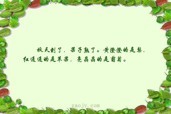 7、秋天真的是一幅美丽天成的画卷。夕阳西下,飒飒秋风,牧笛声声,芦花飞扬。湖水碧蓝,沙滩幽静,瓜果飘香,明月高悬。