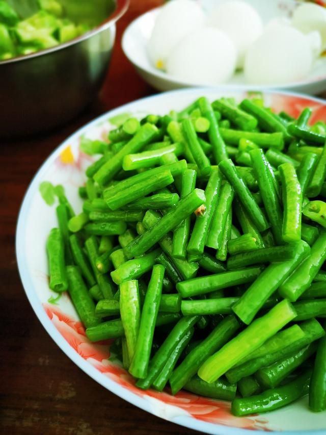 母亲教了我做豆角好吃的方法,炖豆角时,一定要把豆角多炒会儿,加调味品,炒到微微发焦,再加水炖,这样吃起来才香,如果炒几下就加水,炖出的豆角会水分足,缺少香味。
