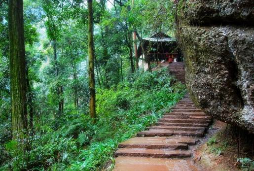 青城山为邛崃山脉的分支。青城山背靠岷山雪岭,面向川西平原。主峰老霄顶海拔1260米。全山林木青翠,四季常青,诸峰环峙,状若城廓,故名青城山。丹梯千级,曲径通幽,以幽洁取胜,自古就有“青城天下幽”的美誉。素有“拜水都江堰,问道青城山”之说。它与剑门之险、峨眉之秀、夔门之雄并称四川四大胜景。景区面积200平方公里。古人记述中,青城山有“三十六峰”“八大洞”“七十二小洞”“一百八景”之说。青城山分前、后山。前山是青城山风景名胜区的主体部分,约15平方千米,景色优美,文物古迹众多,主要景点有建福宫、天然图画、天师洞、朝阳洞、祖师殿、上清宫等;后山总面积100平方公里,水秀、林幽、山雄,高不可攀,直上而去,冬天则寒气逼人、夏天则凉爽无比,蔚为奇观,主要景点有金壁天仓、圣母洞、山泉雾潭、白云群洞、天桥奇景等。