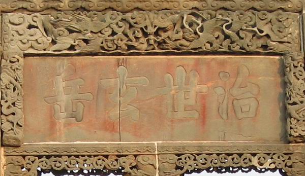 玄岳门是“治世玄岳”牌坊的俗称,建于明嘉靖三十一年(1552)。位于武当山镇东4000米处,为进入武当山的第一道门户,为三间四柱五楼式的石建筑。高12米,阔14米。明间与次间之比为5:3。坊柱高6米,柱周设夹杆石以铁箍加固。柱顶架龙门枋,枋下明间为浮雕大小额枋上部出卷草花牙子雀替,承托浮雕上访和下枋,枋间嵌夹堂花板,构成明间高敞、两侧稍低的三个门道。正楼架于龙门枋上,明间左右立枋柱,中嵌矩形横式牌匾。次间各分两层架设边楼、云板与次楼,构成宽阔高耸的正楼、边楼,由上而下,逐层外展的三滴水歇山式的坊楼,中嵌横式牌匠刻嘉靖皇帝赐额“治世玄岳”。此坊结构简练,构件富于变化,全用卯榫拼合,装配均衡严谨,坊身装饰华丽,雕刻精工,运用线刻、圆雕、浮雕等方法,雕刻了人物、动物和花齐图案等,是南方石作牌楼之佳作,也是明代石雕艺术珍品。