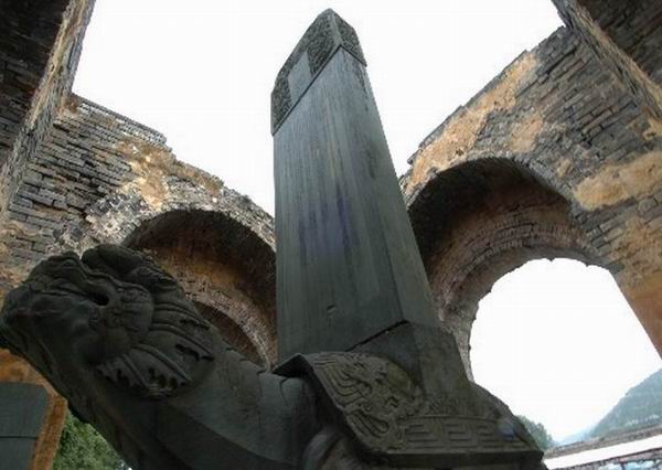 玉虚宫全称“玄天玉虚宫”,道教指玉虚为玉帝的居处。这里是武当山建筑群中最大的宫殿之一,位于老营的南山脚下,距玄岳门西约4公里。玉虚宫建于明永乐十一年(1413),建造宫观庙宇2200间,嘉靖三十一年又经修葺,规制谨严,院落重重。是武当山古建筑群中最大的单元。后来大部分毁于清乾隆十年(1745),现存建筑及遗址主要有2道长1036米的宫墙、两座碑亭、里乐城的五座殿基和清代重建的父母殿、云堂以及东天门、西天门、北天门遗址。这些残存的遗址,现存部分建筑和遗址,还建有重达百吨的“龟驮碑”亭四座。