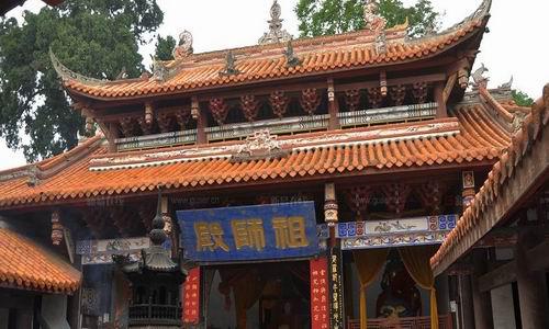 祖师殿古名“清都观”、“洞天观”、“真武宫”位于青城山天仓峰,背靠轩辕峰,面对白云溪。天师洞右后侧山腰间,出天师洞过访宁桥即到。创建于唐代,是青城山道教主要宫观和重要景点之一,唐代诗人杜光庭、薛昌,宋代张愈均在此隐居。唐睿宗的女儿玉真公主也曾在此修道,以求成仙。该殿环境幽静,殿内在真武祖师、吕洞宾、铁拐李等神仙塑像及八仙图壁画、诗文刻石等。现存殿宇建于清同治四年(1865)。殿内供奉真武大帝、东岳大帝、吕洞宾及张三丰塑像。